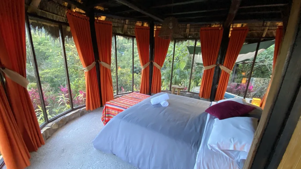 Petit camping tout aménagé au milieu des cascades et de la nature avec piscine et vue. Vous pourrez profiter du bon restaurant, mais aussi de l'ensemble de la Finca en vous baladant dans ce lieu magnifique. Vous ne regretterez pas d'avoir choisi de séjourner dans ce havre de paix. En bonus le restaurant et l'accueil de Patrick en français !