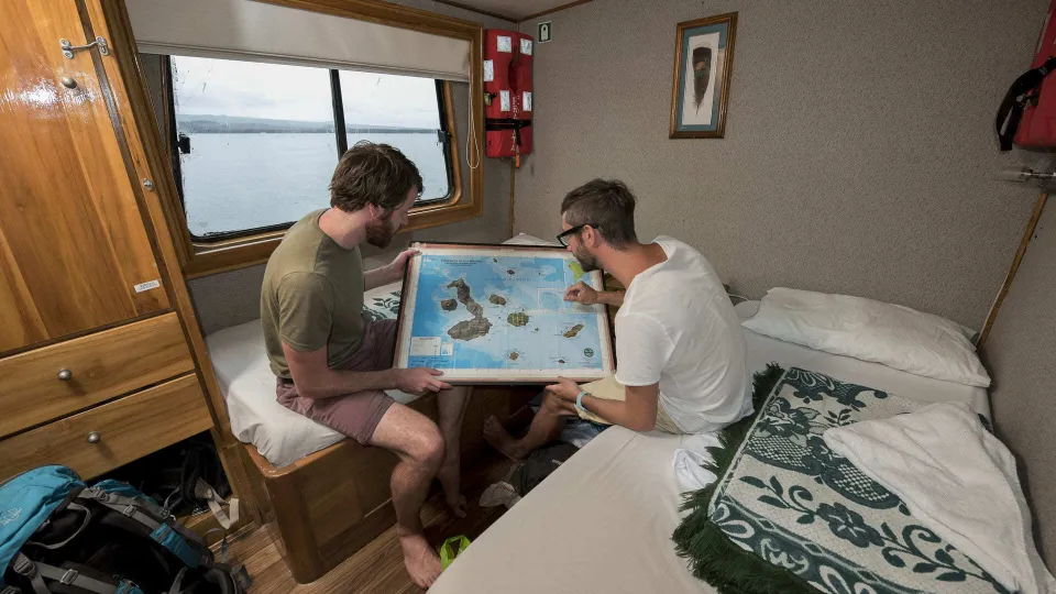 Les journées de croisière sont organisées à peu près de la même manière sur tous les bateaux. Les bateaux de 8 à 16 passagers sont parfaits pour apprendre à connaître vos voisins, ce sont des croisières conviviales ! Vous prendrez toujours les délicieux repas préparés avec soin à bord du bateau, les activités sont suivies de goûters et de moments de repos et la journée se terminera toujours par un briefing avec votre guide lors duquel vous parlerez des activités du lendemain. Si vous ne souhaitez pas participer à une activité, vous aurez la possibilité de rester sur le bateau pour faire bronzette ou bouquiner. Pour commencer à vous faire rêver je vous donne un exemple (condensé) d’un séjour de 8 jours/7 nuits :Jour 1 : Après-midi, Arrivée à l'aéroport de Baltra et rencontre avec votre guide. Délicieux déjeuner à bord du bateau. Visite de la plage de Bachas (Santa Cruz) l'un des principaux sites de nidification des tortues marines de tout l'archipel, vous pourrez vous baigner avant de remonter à bord.