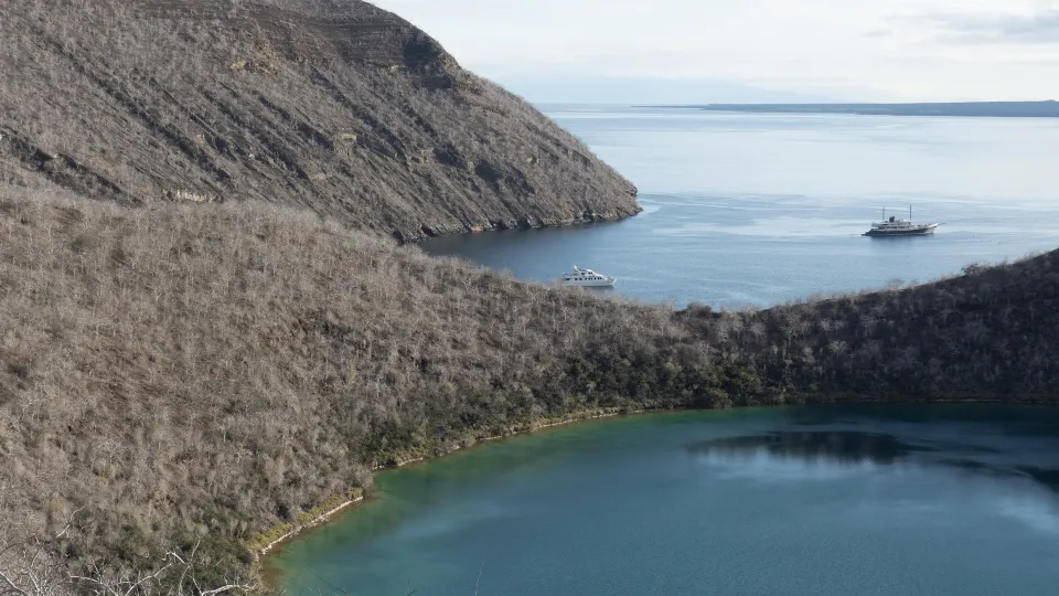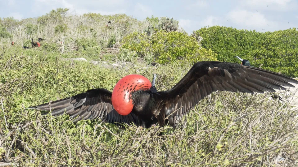 Jour 2 : Matin, visite du site El Barranco sur l'île de Genovesa, randonnée de 2 kilomètres lors de laquelle vous pourrez apercevoir des fous à pieds rouges, des mouettes à queue fourchue, des colombes des Galápagos et de nombreuses autres espèces parmi les palo santos et les cactus de lave. Après-midi, observation d’oiseaux et snorkelling dans la baie de Darwin.