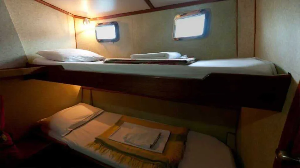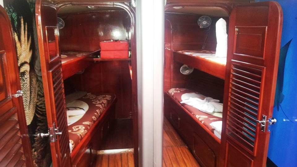 Le Aida Maria est un petit bateau pour 16 passagers avec cabines doubles climatisées avec lits superposés. Chaque cabine possède sa salle de bain privée. Découvrez le carnet de voyage d'Aurélie et Hien qui ont passé 8 jours à bord de l’Aida Maria.